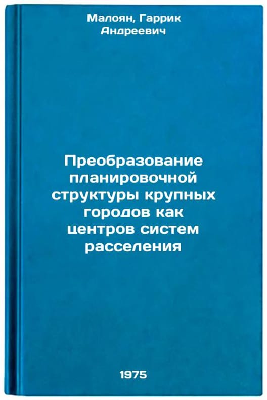 In Russian. Maloyan, Garrick Andreevich. Transforming the planning structure of large cities as centers of settlement systems. Moscow: GOSINTI, 1975. Preobrazovanie planirovochnoy struktury krupnykh gorodov kak tsentrov sistem rasseleniya. In Russian /Transforming the planning structure of major cities as centers of settlement systems. All images are for identification of editions only. Several books of the same edition may be available. Please feel free to request photos of available books. SKU7020291