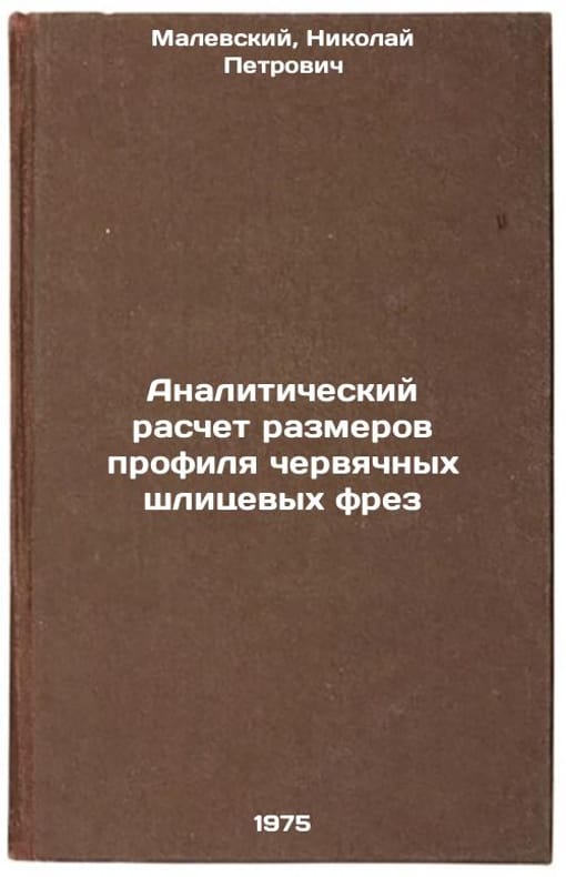 In Russian. Malevsky, Nikolai Petrovich. Analytical calculation of the dimensions of the profile of worm milling mills. Moscow: MTU, 1975. Analiticheskiy raschet razmerov profilya chervyachnykh shlitsevykh frez. In Russian /Analytical calculation of the dimensions of the profile of worm mills. All images are for identification of editions only. Several books of the same edition may be available. Please feel free to request photos of available books. SKU7022326