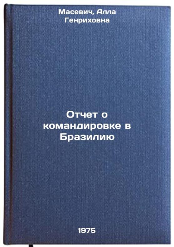 In Russian. Masevich, Alla Genrikhovna. Report on mission to Brazil. Moscow: 1975. All images are for identification of editions only. Several books of the same edition may be available. Please feel free to request photos of available books. SKU7022438