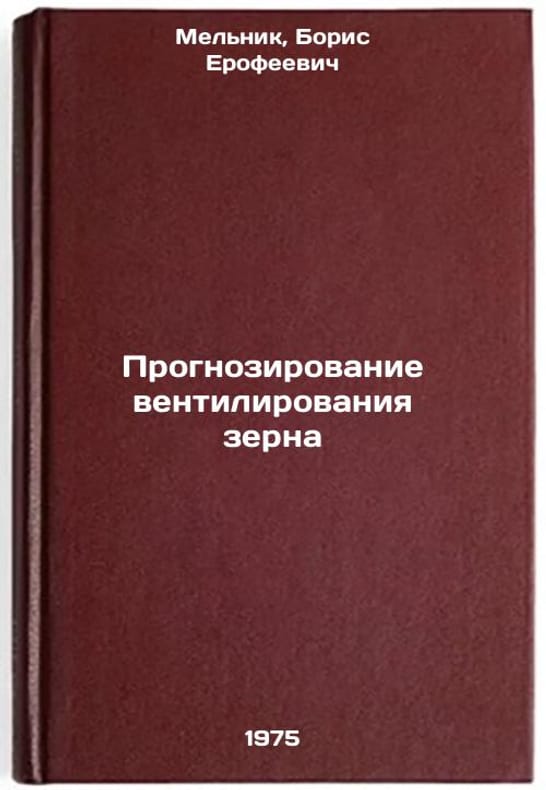 In Russian. Melnik, Boris Erofeevich. Forecasting Grain Ventilation. Moscow: Central Scientific and Technical Research Institute of Minzaga USSR, 1975. All images are for identification of editions only. Several books of the same edition may be available. Please feel free to request photos of available books. SKU7023797