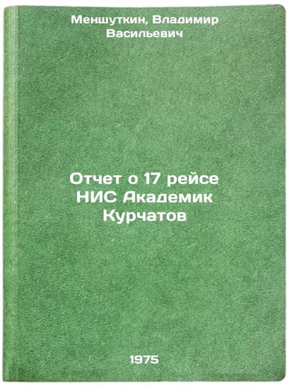 In Russian. Menshutkin, Vladimir Vasilievich. Report on the 17th flight of the Scientific Research Institute Akademik Kurchatov. Moscow: 1975. Otchet o 17 reyse NIS Akademik Kurchatov. In Russian /Report on the 17th flight of the NIS Akademik Kurchatov. All images are for identification of editions only. Several books of the same edition may be available. Please feel free to request photos of available books. SKU7023952