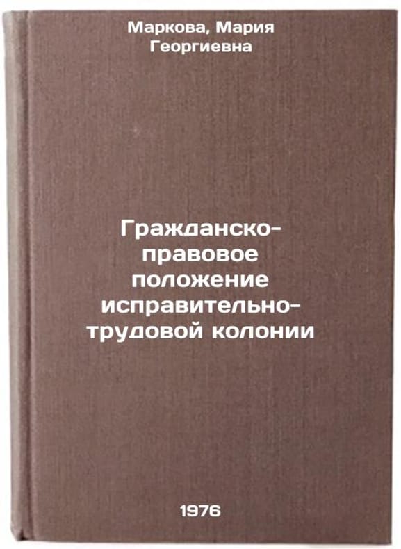 In Russian. Markova, Maria Georgievna. Civil Law Status of a Corrective Labor Colony. Moscow: 1976. Grazhdansko-pravovoe polozhenie ispravitel'no-trudovoy kolonii. In Russian /Civil status of a corrective labour colony . All images are for identification of editions only. Several books of the same edition may be available. Please feel free to request photos of available books. SKU7024651