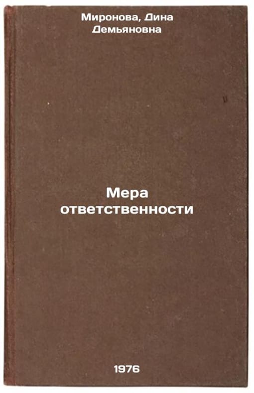 In Russian. Mironova, Dina Demyanovna. Measure of Responsibility. Moscow: Knowledge, 1976. All images are for identification of editions only. Several books of the same edition may be available. Please feel free to request photos of available books. SKU7024979
