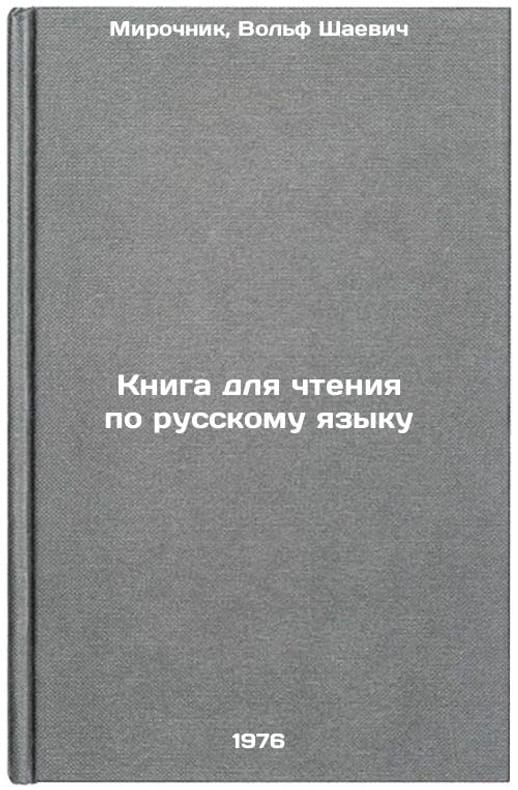 In Russian. Mirochnik, Wolf Shaevich. Book for reading in Russian. Tashkent: Ukituvchi, 1976. All images are for identification of editions only. Several books of the same edition may be available. Please feel free to request photos of available books. SKU7025015