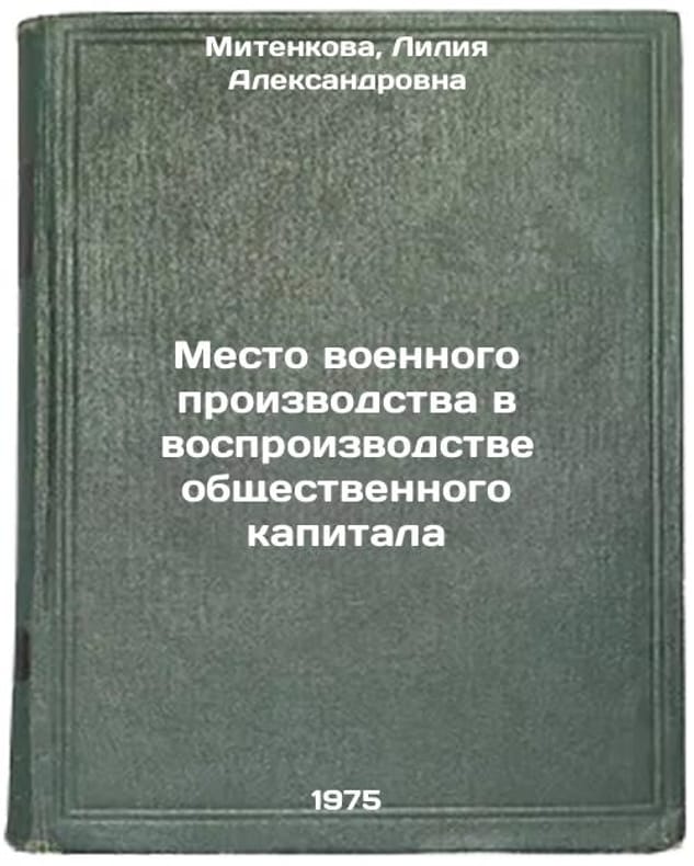 In Russian. Mitenkova, Liliya Alexandrovna. The place of military production in the reproduction of social capital. Saratov: 1975. Mesto voennogo proizvodstva v vosproizvodstve obshchestvennogo kapitala. In Russian /The place of military production in the reproduction of social capital. All images are for identification of editions only. Several books of the same edition may be available. Please feel free to request photos of available books. SKU7025347