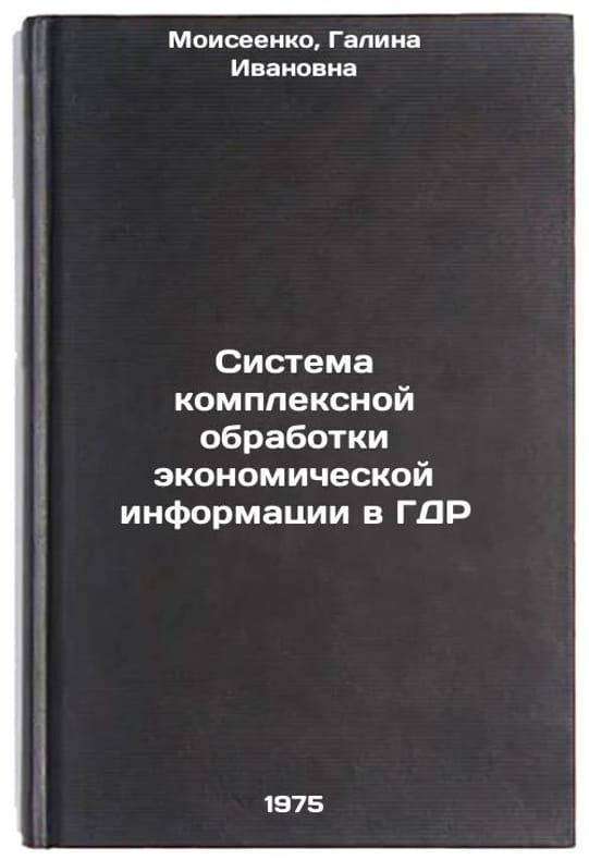 In Russian. Moiseenko, Galina Ivanovna. The System of Complex Processing of Economic Information in the GDR. Moscow: Economics, 1975. Sistema kompleksnoy obrabotki ekonomicheskoy informatsii v GDR. In Russian /System of integrated processing of economic information in the GDR. All images are for identification of editions only. Several books of the same edition may be available. Please feel free to request photos of available books. SKU7026976