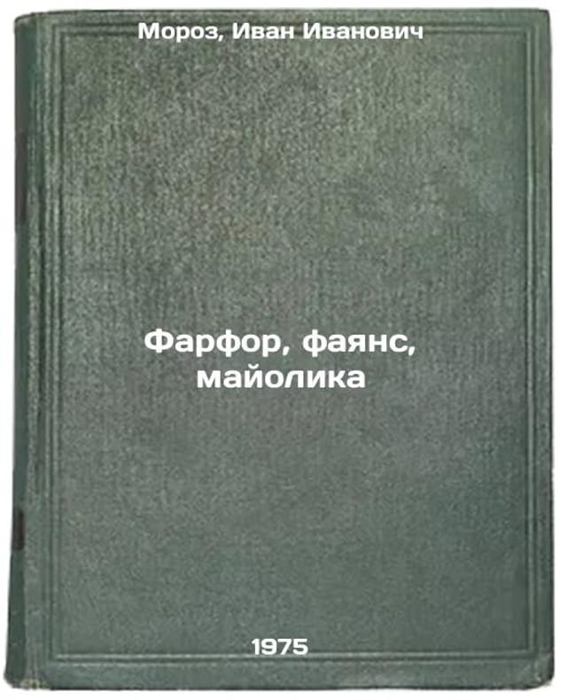 In Russian. Moroz, Ivan Ivanovich. Porcelain, faience, mayolica. Kiev: Technika, 1975. All images are for identification of editions only. Several books of the same edition may be available. Please feel free to request photos of available books. SKU7027086