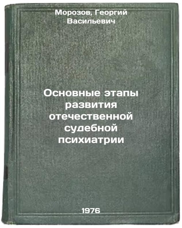 In Russian. Morozov, Georgy Vasilievich. The main stages of development of domestic forensic psychiatry. Moscow: Medicine, 1976. Osnovnye etapy razvitiya otechestvennoy sudebnoy psikhiatrii. In Russian /The main stages of development of domestic forensic psychiatry . All images are for identification of editions only. Several books of the same edition may be available. Please feel free to request photos of available books. SKU7027159