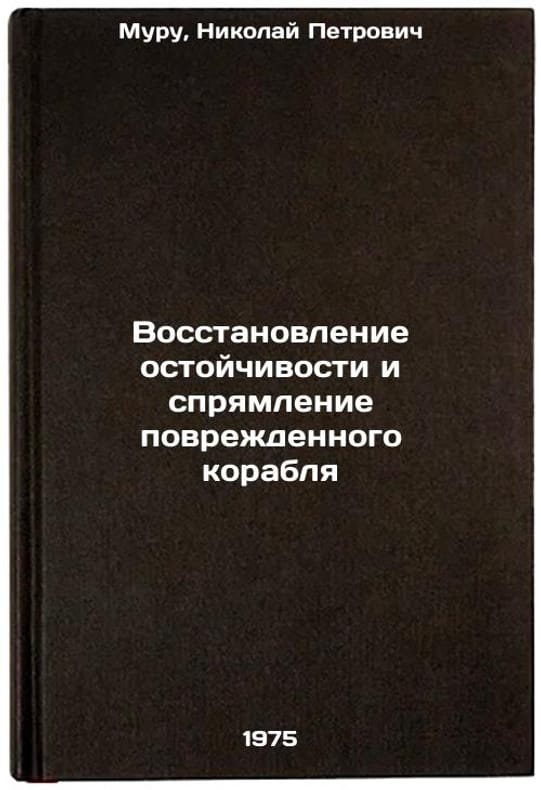 In Russian. Muru, Nikolai Petrovich. Restoration of stability and straightening of damaged ship. Leningrad: 1975. Vosstanovlenie ostoychivosti i spryamlenie povrezhdennogo korablya. In Russian /Restoring stability and straightening the damaged ship. All images are for identification of editions only. Several books of the same edition may be available. Please feel free to request photos of available books. SKU7027409