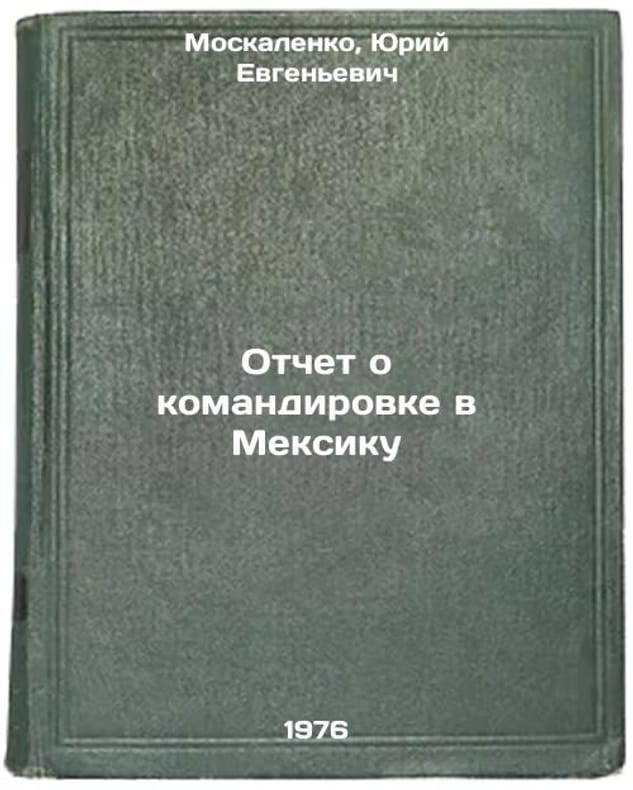 In Russian. Moskalenko, Yuri Evgenievich. Report on a mission to Mexico. Moscow: 1976. All images are for identification of editions only. Several books of the same edition may be available. Please feel free to request photos of available books. SKU7028053