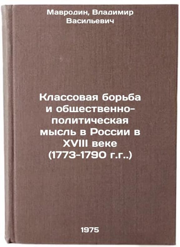 In Russian. Mavrodin, Vladimir Vasilievich. Class Struggle and Social and Political Thought in Russia in the 18th Century (1773-1790). Leningrad: Leningrad Unta Publishing House, 1975. Klassovaya bor'ba i obshchestvenno-politicheskaya mysl' v Rossii v XVIII veke (1773-1790 gg.). In Russian /Class Struggle and Social and Political Thought in Russia in the 18th Century (1773-1790). All images are for identification of editions only. Several books of the same edition may be available. Please feel free to request photos of available books. SKU7030990