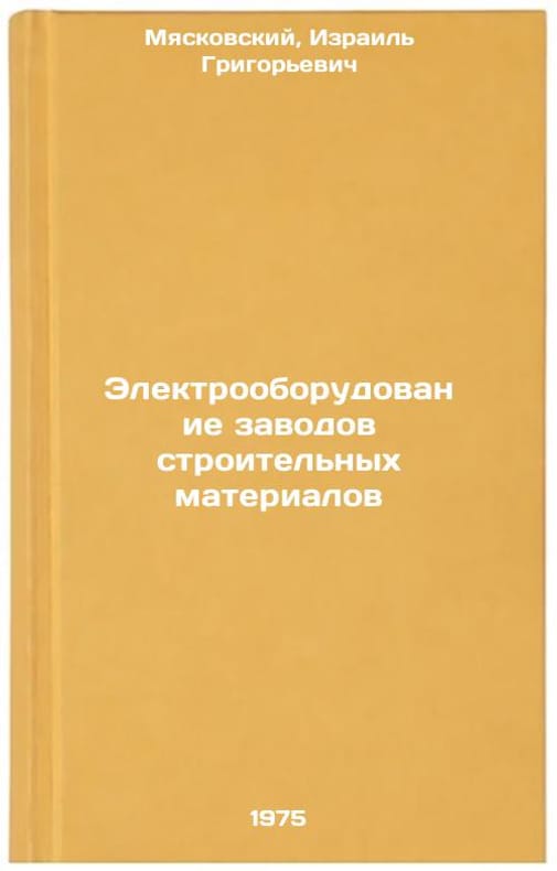 In Russian. Myaskovsky, Israel Grigorievich. Electrical Equipment of Construction Materials Plants. Moscow: Stroyizdat, 1975. Elektrooborudovanie zavodov stroitel'nykh materialov. In Russian /Electrical installations of construction materials plants. All images are for identification of editions only. Several books of the same edition may be available. Please feel free to request photos of available books. SKU7031586