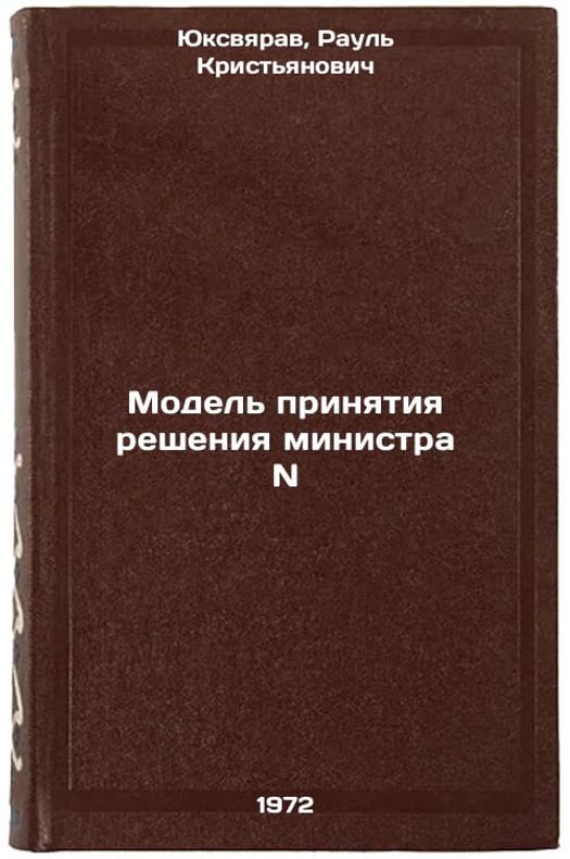 In Russian. Juksvyrav, Raoul Kristjanovich. Minister N. Tallinns decision-making model: 1972. All images are for identification of editions only. Several books of the same edition may be available. Please feel free to request photos of available books. SKU7033543