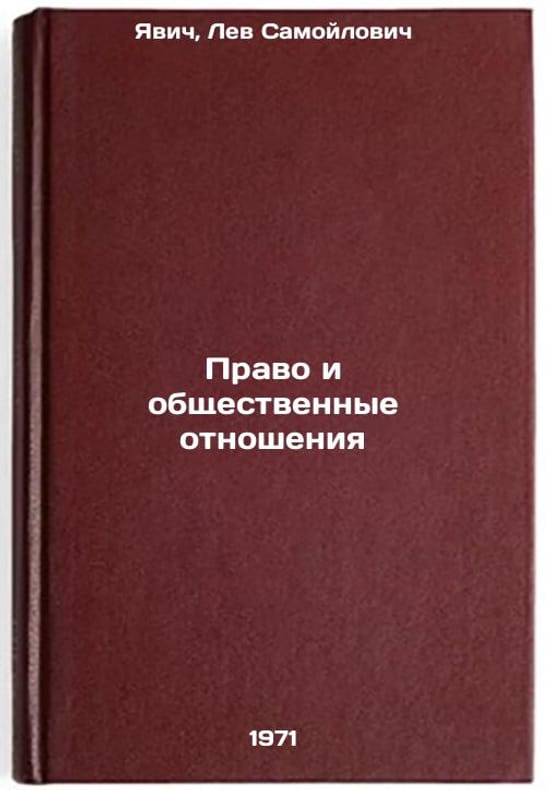 In Russian. Yavich, Lev Samoilovich. Law and Public Relations. Moscow: Law, 1971. All images are for identification of editions only. Several books of the same edition may be available. Please feel free to request photos of available books. SKU7036550