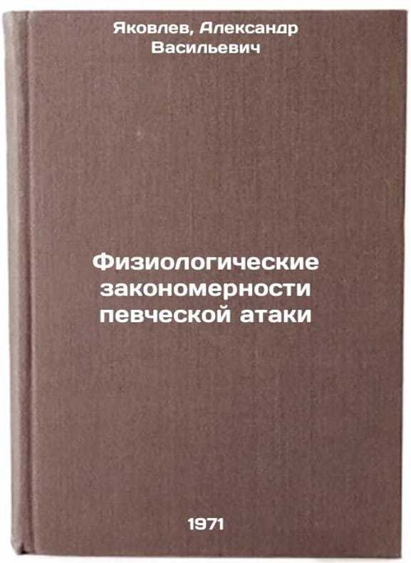 In Russian. Yakovlev, Alexander Vasilievich. Physiological regularities of a singing attack. Leningrad: Music. Leningrad Division, 1971. Fiziologicheskie zakonomernosti pevcheskoy ataki. In Russian /Physiological patterns of singing attack . All images are for identification of editions only. Several books of the same edition may be available. Please feel free to request photos of available books. SKU7036834