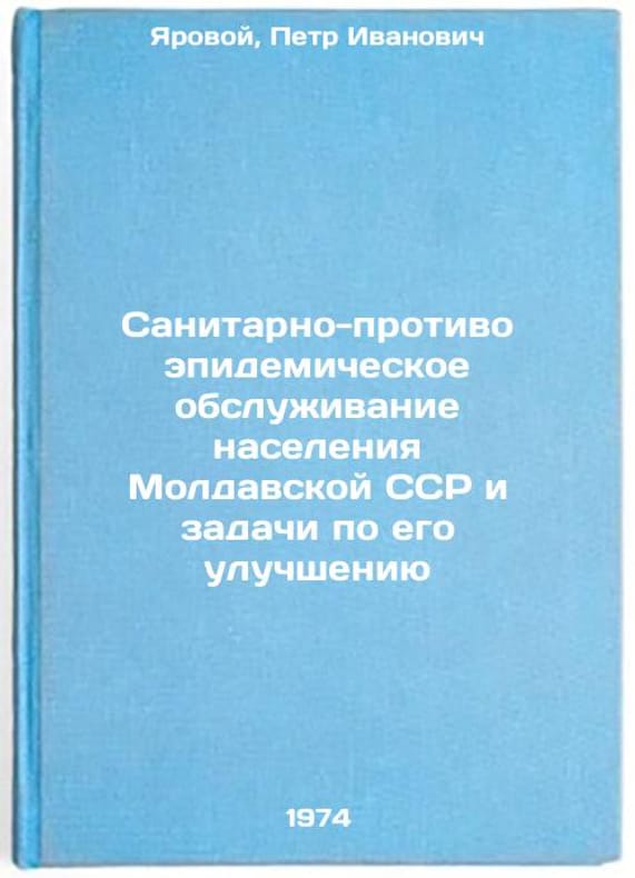 In Russian. Yarovoy, Petr Ivanovich. Sanitary and anti-epidemic services for the population of the Moldovan SSR and tasks for its improvement. Chisinau: 1974. All images are for identification of editions only. Several books of the same edition may be available. Please feel free to request photos of available books.SKU7038033