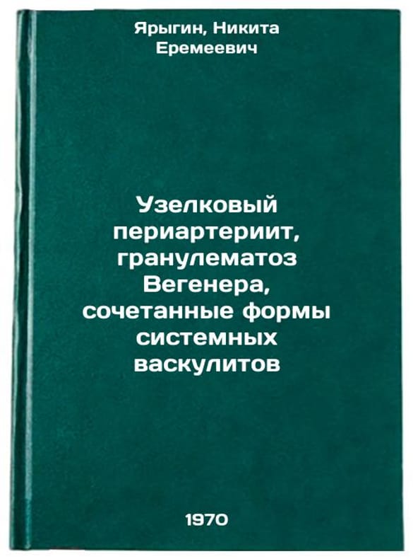 In Russian. Yarygin, Nikita Eremeevich. Nodular periarteritis, Wegener granulematosis, combined forms of systemic vasculitis. Moscow: Medicine, 1970. Uzelkovyy periarteriit, granulematoz Vegenera, sochetannye formy sistemnykh vaskulitov. In Russian /Periarterial nodules, Wegener granulomatosis, combined forms of systemic vasculitis . All images are for identification of editions only. Several books of the same edition may be available. Please feel free to request photos of available books. SKU7038211