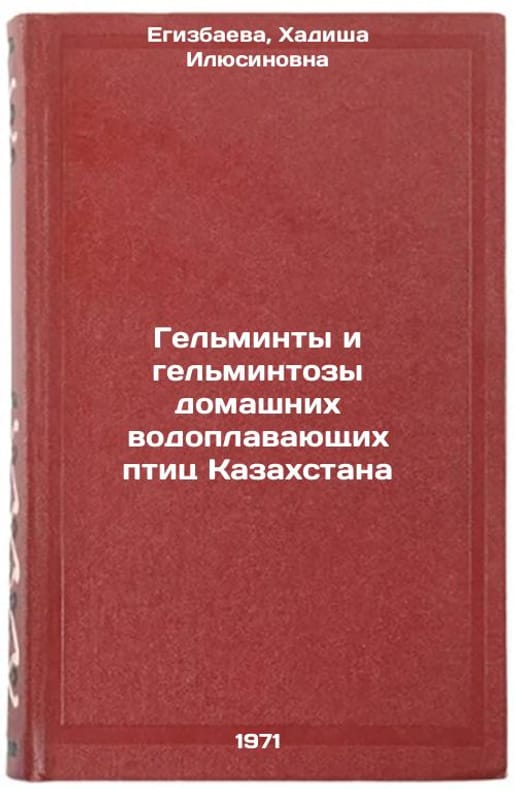 In Russian. Egizbaeva, Khadisha Ilyusinovna. Helminths and helminths of domestic waterfowl in Kazakhstan. Almaty: Kainar, 1971. Gel'minty i gel'mintozy domashnikh vodoplavayushchikh ptits Kazakhstana. In Russian /Helminths and helminths of domestic waterfowl in Kazakhstan . All images are for identification of editions only. Several books of the same edition may be available. Please feel free to request photos of available books. SKU7038535