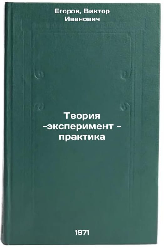 In Russian. Egorov, Viktor Ivanovich. Theory-experiment-practice. Moscow: Knowledge, 1971. All images are for identification of editions only. Several books of the same edition may be available. Please feel free to request photos of available books. SKU7038739