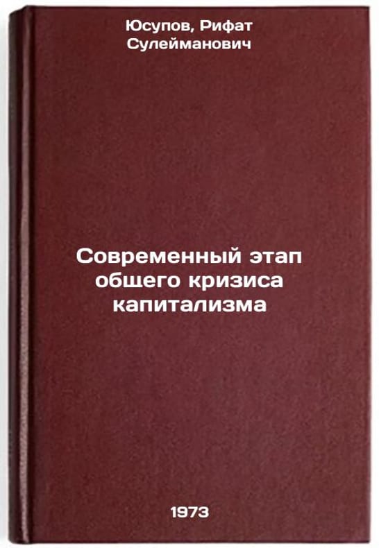 In Russian. Yusupov, Rifat Suleimanovich. The Modern Stage of the General Crisis of Capitalism. Moscow: 1973. Sovremennyy etap obshchego krizisa kapitalizma. In Russian/The current stage of the general crisis of capitalism. All images are for identification of editions only. Several books of the same edition may be available. Please feel free to request photos of available books. SKU7039717