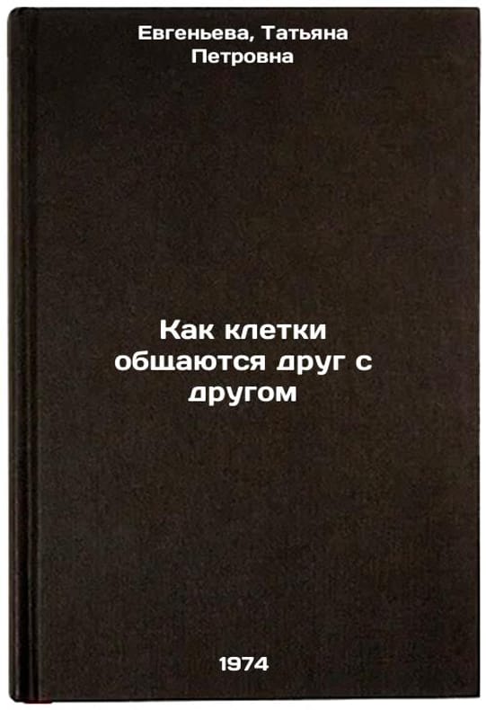 In Russian. Evgenieva, Tatyana Petrovna. How cells communicate with each other. Moscow: Knowledge, 1974. Kak kletki obshchayutsya drug s drugom. In Russian /How cells communicate with each other. All images are for identification of editions only. Several books of the same edition may be available. Please feel free to request photos of available books. SKU7041057