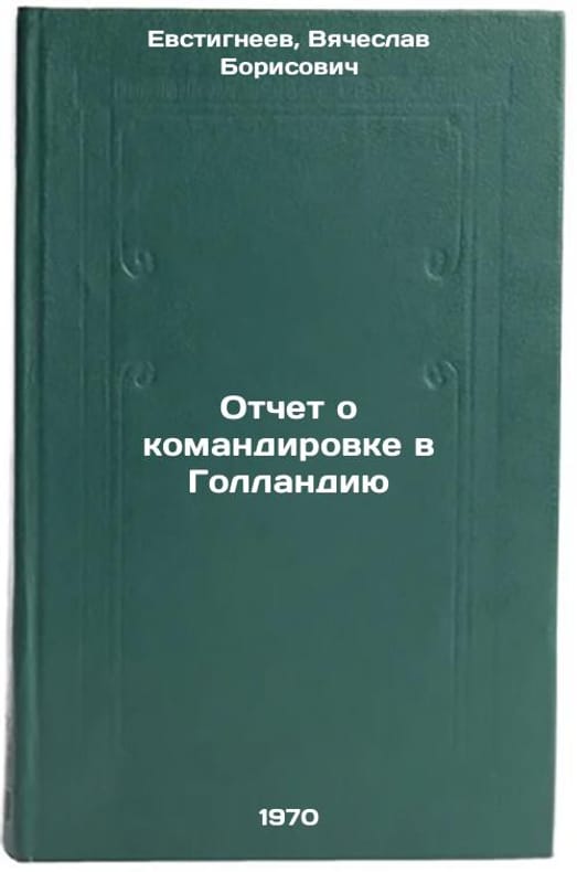 In Russian. Evstigneev, Vyacheslav Borisovich. Report on the mission to the Netherlands. Moscow: VINITI, 1970. Otchet o komandirovke v Gollandiyu. In Russian /Report on the mission to the Netherlands . All images are for identification of editions only. Several books of the same edition may be available. Please feel free to request photos of available books. SKU7041269