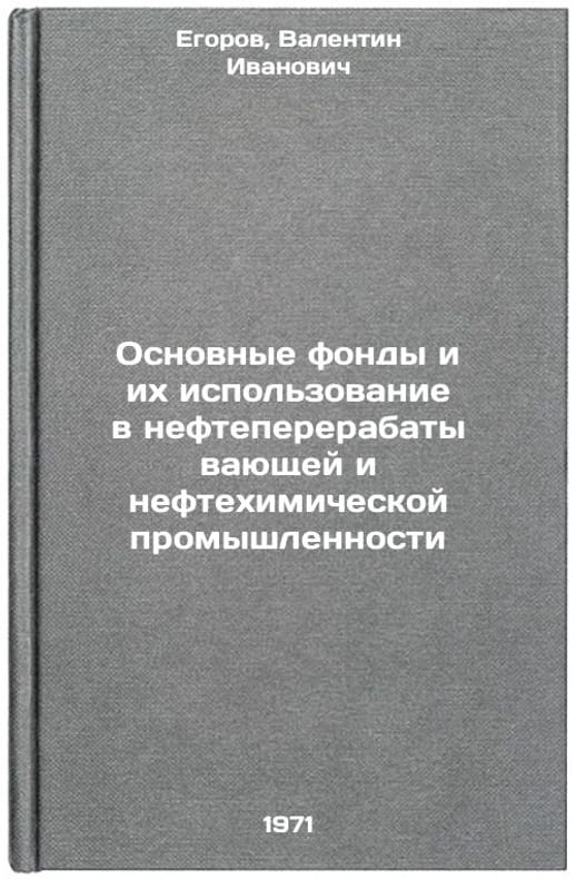 In Russian. Egorov, Valentin Ivanovich. Fixed assets and their use in the oil refining and petrochemical industries. Moscow: Subsoil, 1971. Osnovnye fondy i ikh ispol'zovanie v neftepererabatyvayushchey i neftekhimicheskoy promyshlennosti. In Russian /Fixed assets and their use in the refining and petrochemical industries . All images are for identification of editions only. Several books of the same edition may be available. Please feel free to request photos of available books. SKU7041487