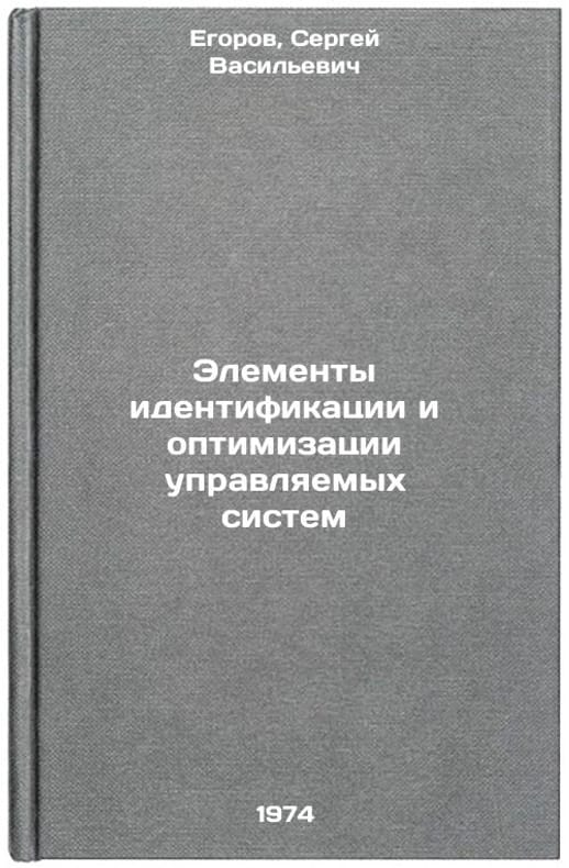 In Russian. Egorov, Sergey Vasilievich. Elements of Identification and Optimization of Controlled Systems. Moscow: 1974. Elementy identifikatsii i optimizatsii upravlyaemykh sistem. In Russian /Controlled Systems Identification and Optimization Elements. All images are for identification of editions only. Several books of the same edition may be available. Please feel free to request photos of available books. SKU7041590