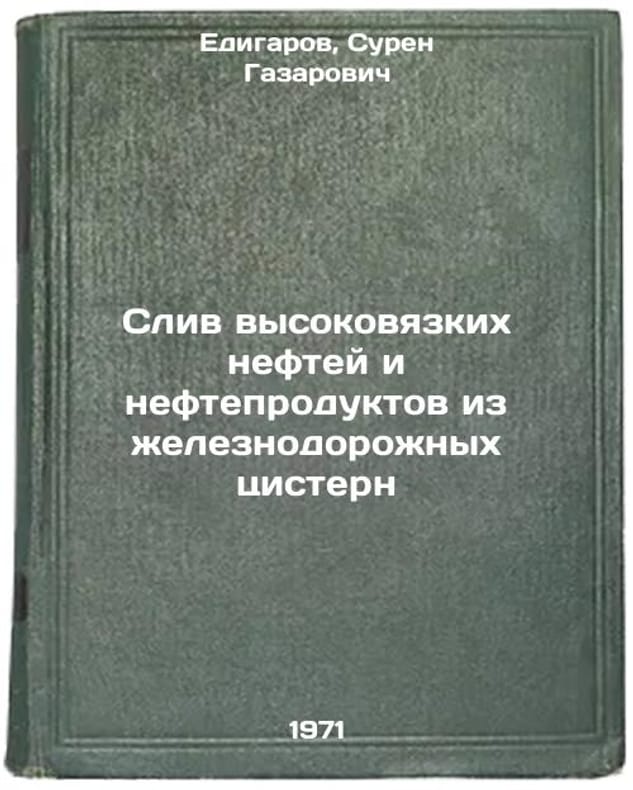 In Russian. Edigarov, Suren Gazarovich. Discharge of highly viscous oil and petroleum products from railway tankers. Moscow: 1971. Sliv vysokovyazkikh neftey i nefteproduktov iz zheleznodorozhnykh tsistern. In Russian /Discharge of highly viscous oil and petroleum products from rail tankers . All images are for identification of editions only. Several books of the same edition may be available. Please feel free to request photos of available books. SKU7041722