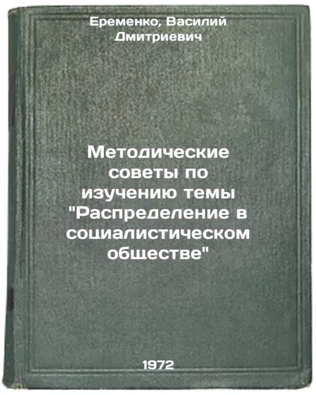 In Russian. Eremenko, Vasily Dmitrievich. Methodological advice for studying the topic Distribution in socialist society. Volgograd: 1972. Metodicheskie sovety po izucheniyu temy Raspredelenie v sotsialisticheskom obshchestve. In Russian/Methodological Advice for the Study of Distribution in a Socialist Society. All images are for identification of editions only. Several books of the same edition may be available. Please feel free to request photos of available books. SKU7042121