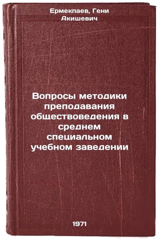 In Russian. Ermekpayev, Geni Akishevich. Issues of Methodology of Teaching Social Science in Secondary Specialized Educational Institutions. Almaty: 1971. Voprosy metodiki prepodavaniya obshchestvovedeniya v srednem spetsial'nom uchebnom zavedenii. In Russian /Issues of Social Science Teaching Methodology in Secondary Specialized Institutions . All images are for identification of editions only. Several books of the same edition may be available. Please feel free to request photos of available books. SKU7042286