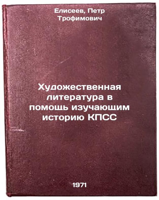 In Russian. Eliseev, Petr Trofimovich. Art literature to help those studying the history of the CPSU. Moscow: Moscow Worker, 1971. Khudozhestvennaya literatura v pomoshch' izuchayushchim istoriyu KPSS. In Russian /Art literature to help those studying the history of the CPSU . All images are for identification of editions only. Several books of the same edition may be available. Please feel free to request photos of available books. SKU7042629