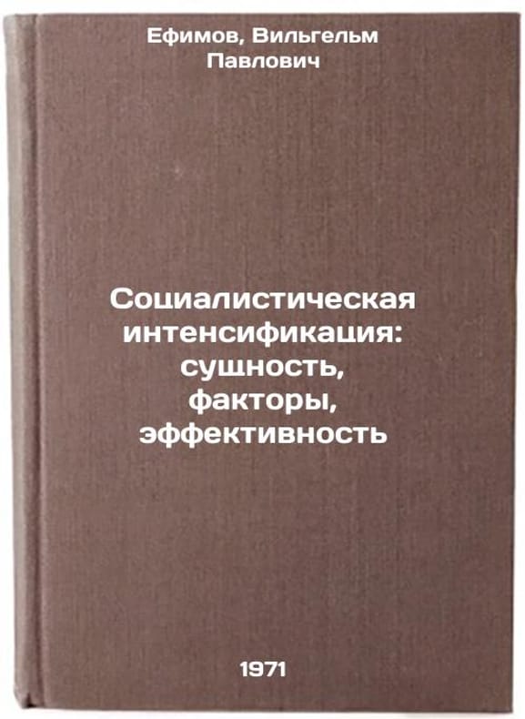 In Russian. Efimov, Wilhelm Pavlovich. Socialist Intensification: Essence, Factors, Efficiency. Moscow: Thought, 1971. Sotsialisticheskaya intensifikatsiya: sushchnost', faktory, effektivnost'. In Russian /Socialist Intensification: Essence, Factors, Efficiency . All images are for identification of editions only. Several books of the same edition may be available. Please feel free to request photos of available books. SKU7043241