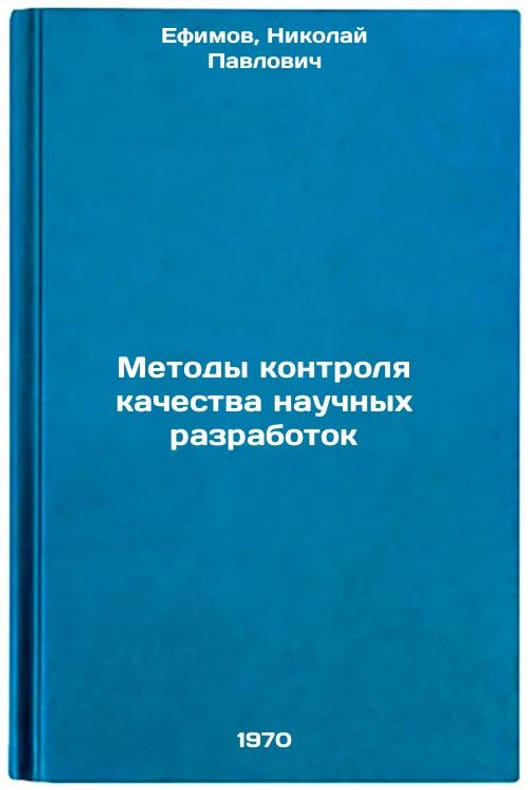 In Russian. Efimov, Nikolai Pavlovich. Methods of quality control of scientific developments. Moscow: 1970. Metody kontrolya kachestva nauchnykh razrabotok. In Russian /Methods of quality control of scientific developments . All images are for identification of editions only. Several books of the same edition may be available. Please feel free to request photos of available books. SKU7043345