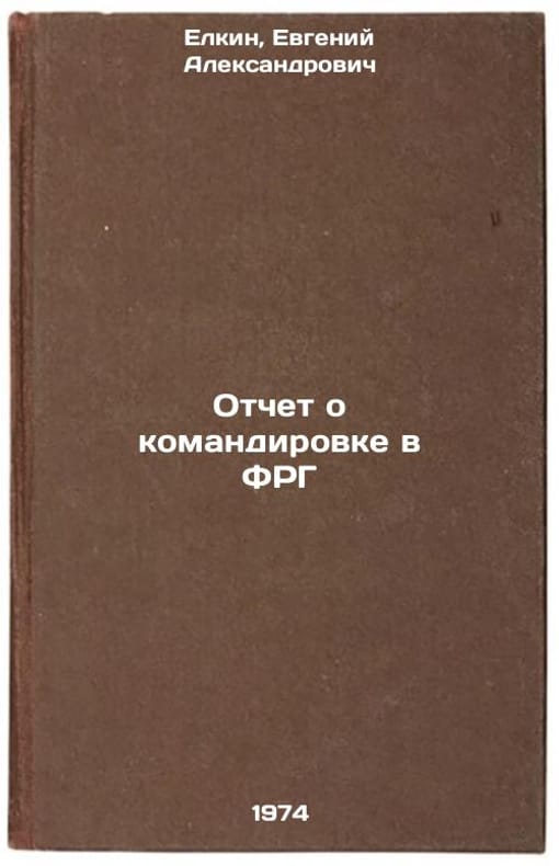In Russian. Elkin, Evgeniy Alexandrovich. Report on mission to Germany. Moscow: 1974. All images are for identification of editions only. Several books of the same edition may be available. Please feel free to request photos of available books. SKU7043842