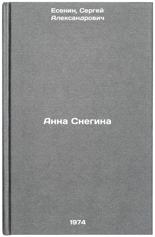 Yesenin S. A. Anna Snegina. In Russian /Esenin S. A. Anna Snegina. Poem [In Translations into Foreign Languages]. Subsequent by O. Voronova: VGBIL Scientific and Bibliographic Center: Rev. Yu. G. Friedstein Moscow The VGBIL M. I. Rudomino Book Center 2010. Contact us for details or to request photos of available books. Delivery of this book could take longer than normal due to additional handling time before shipping, and no rush delivery options are available. Please let us know if you have a specific date by which you need to receive your order. SKUalbc675b06b349b287d