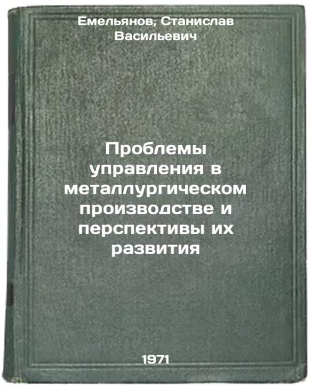 In Russian. Emelyanov, Stanislav Vasilievich. Problems of management in metallurgical production and prospects for their development. Moscow: 1971. Problemy upravleniya v metallurgicheskom proizvodstve i perspektivy ikh razvitiya. In Russian /Management problems in metallurgical production and prospects for their development . All images are for identification of editions only. Several books of the same edition may be available. Please feel free to request photos of available books. SKU7045028