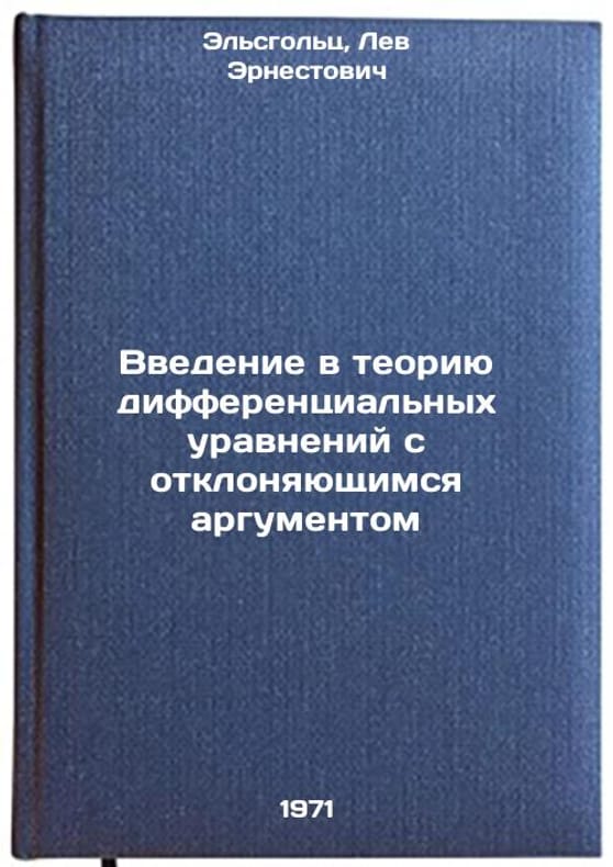 In Russian. Elsgolts, Lev Ernestovich. An introduction to the theory of differential equations with a deviating argument. Moscow: Science, 1971. Vvedenie v teoriyu differentsial'nykh uravneniy s otklonyayushchimsya argumentom. In Russian /Introduction to the theory of differential equations with a deviating argument . All images are for identification of editions only. Several books of the same edition may be available. Please feel free to request photos of available books. SKU7047695