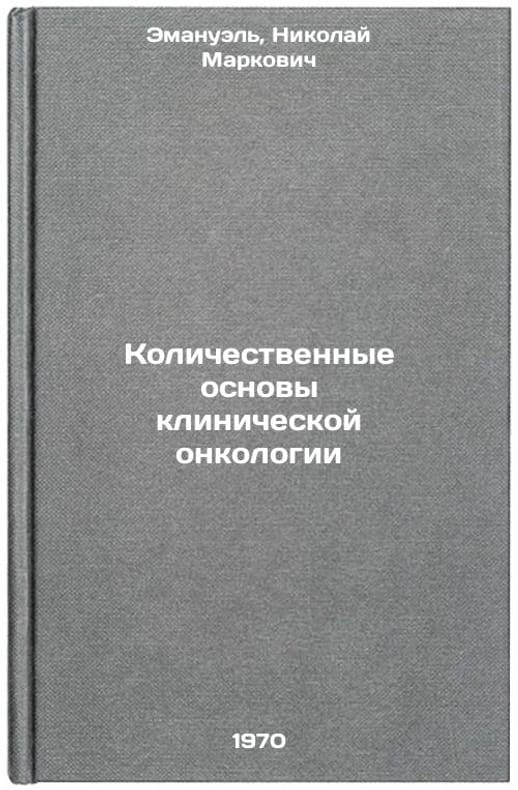 In Russian. Emanuel, Nikolai Markovich. Quantitative Basics of Clinical Oncology. Moscow: Medicine, 1970. Kolichestvennye osnovy klinicheskoy onkologii. In Russian /Quantitative Basics of Clinical Oncology . All images are for identification of editions only. Several books of the same edition may be available. Please feel free to request photos of available books. SKU7047757