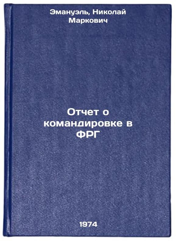 In Russian. Emanuel, Nikolai Markovich. Report on mission to Germany. Moscow: 1974. All images are for identification of editions only. Several books of the same edition may be available. Please feel free to request photos of available books. SKU7047761