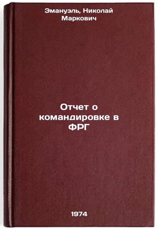 In Russian. Emanuel, Nikolai Markovich. Report on mission to Germany. Moscow: 1974. All images are for identification of editions only. Several books of the same edition may be available. Please feel free to request photos of available books. SKU7047762