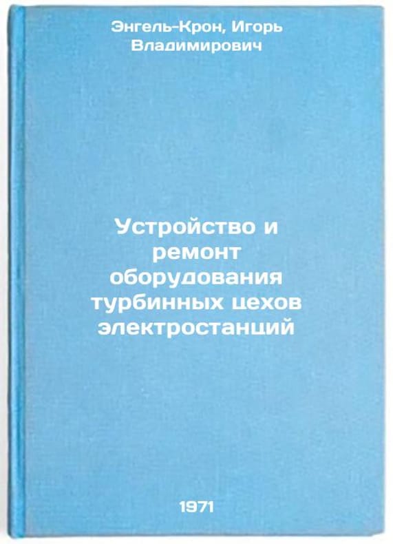 In Russian. Engel-Kron, Igor Vladimirovich. Construction and repair of equipment for turbine shops of power plants. Moscow: Higher School, 1971. Ustroystvo i remont oborudovaniya turbinnykh tsekhov elektrostantsiy. In Russian /Installation and repair of turbine shop equipment in power plants . All images are for identification of editions only. Several books of the same edition may be available. Please feel free to request photos of available books. SKU7047837