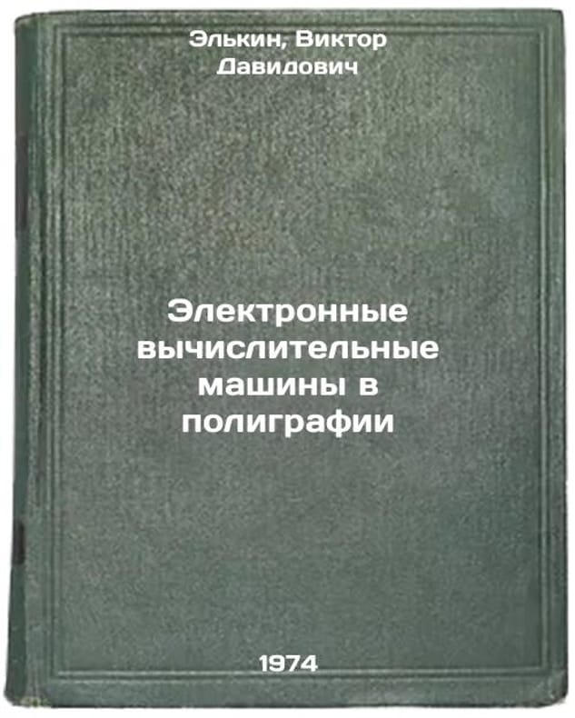 In Russian. Elkin, Viktor Davidovich. Electronic Computers in Printing. Moscow: Book, 1974. Elektronnye vychislitel'nye mashiny v poligrafii. In Russian /Electronic Computers in Printing. All images are for identification of editions only. Several books of the same edition may be available. Please feel free to request photos of available books. SKU7048103
