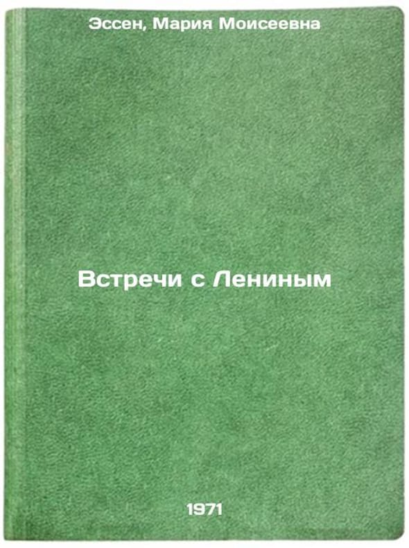 In Russian. Essen, Maria Moiseevna. Meetings with Lenin. Moscow: Politizdat, 1971. All images are for identification of editions only. Several books of the same edition may be available. Please feel free to request photos of available books. SKU7048690