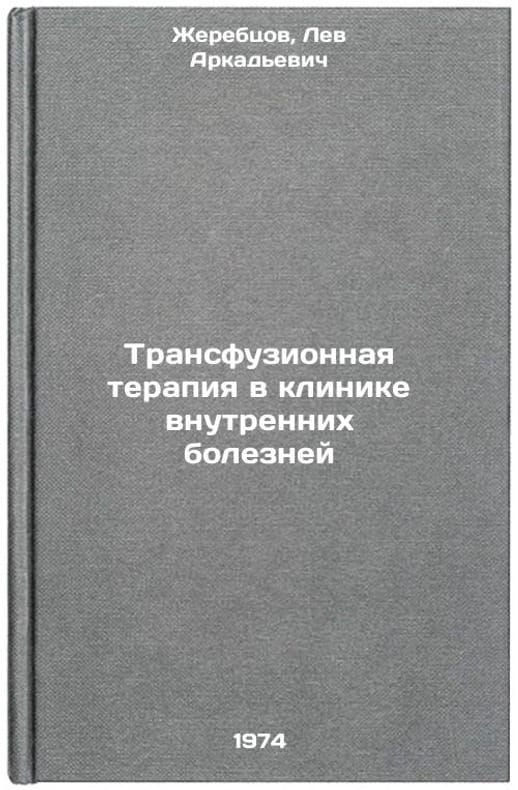 In Russian. Zherebtsov, Lev Arkadevich. Transfusion Therapy in the Clinic of Internal Diseases. Moscow: COLIUV, 1974. Transfuzionnaya terapiya v klinike vnutrennikh bolezney. In Russian /Transfusion therapy at the Internal Medicine Clinic. All images are for identification of editions only. Several books of the same edition may be available. Please feel free to request photos of available books. SKU7049478