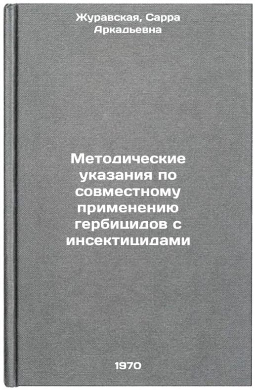 In Russian. Zhuravskaya, Sarra Arkadyevna. Methodological Guidelines for Co-Use of Herbicides with Insecticides. Tashkent: 1970. Metodicheskie ukazaniya po sovmestnomu primeneniyu gerbitsidov s insektitsidami. In Russian /Guidelines for the co-use of herbicides with insecticides . All images are for identification of editions only. Several books of the same edition may be available. Please feel free to request photos of available books. SKU7051326