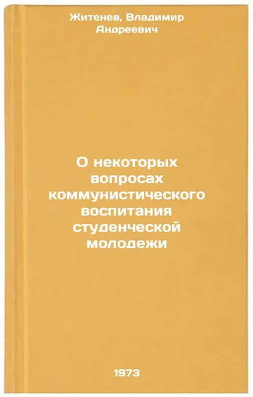 In Russian. Zhitenev, Vladimir Andreevich. On some issues of communist education of student youth. Moscow: 1973. O nekotorykh voprosakh kommunisticheskogo vospitaniya studencheskoy molodezhi. In Russian/On some issues of communist education of students youth. All images are for identification of editions only. Several books of the same edition may be available. Please feel free to request photos of available books. SKU7051930