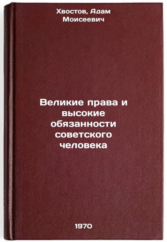 In Russian. Khvostov, Adam Moiseevich. The Great Rights and High Duties of the Soviet Man. Minsk: 1970. Velikie prava i vysokie obyazannosti sovetskogo cheloveka. In Russian /The Great Rights and High Duties of the Soviet Man . All images are for identification of editions only. Several books of the same edition may be available. Please feel free to request photos of available books. SKU7053560