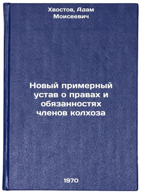 In Russian. Khvostov, Adam Moiseevich. New model charter on the rights and duties of members of the collective farm. Minsk: 1970. Novyy primernyy ustav o pravakh i obyazannostyakh chlenov kolkhoza. In Russian /New Model Statute on the Rights and Duties of Members of the Collective Farm . All images are for identification of editions only. Several books of the same edition may be available. Please feel free to request photos of available books. SKU7053567