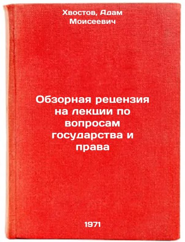 In Russian. Khvostov, Adam Moiseevich. Review of lectures on issues of state and law. Minsk: 1971. Obzornaya retsenziya na lektsii po voprosam gosudarstva i prava. In Russian /Review of Lectures on State and Law . All images are for identification of editions only. Several books of the same edition may be available. Please feel free to request photos of available books. SKU7053569